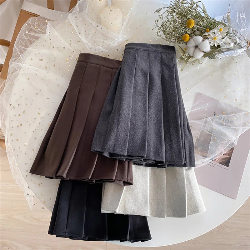 Plaid Pleated Skirt Woolen Skirt Autumn and Winter Korean Version of The Thick High Waist Thin Anti-dazzle A-line Pleated Skirt